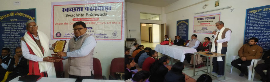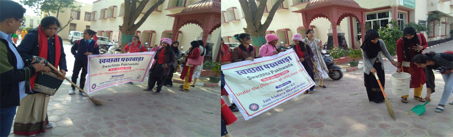21 जनवरी 2020।जैन विश्वभारती संस्थान (मान्य विश्वविद्यालय) की राष्ट्रीय सेवा योजना की दोनों इकाइयों के संयुक्त तत्वावधान में भारत सरकार के मानव संसाधन एवं विकास मंत्रालय तथा विश्वविद्यालय अनुदान आयोग के निर्देशानुसार चलाये जा रहे स्वच्छता पखवाड़े के तहत मंगलवार को स्वयंसेविकाओं ने विश्वविद्यालय परिसर में सफाई की और कचरा हटाया। स्वयंसेविकाओं ने एनएसएस प्रभारी डाॅ. बलबीर सिंह चारण एवं डाॅ. प्रगति भटनागर के निर्देशन में यह अभियान चलाया गया। डाॅ. चारण व डाॅ. भटनागर ने भी इस अवसर पर श्रमदान किया। डाॅ. चारण ने स्वयंसेविकाओं से कहा कि उनके द्वारा किया गया श्रमदान विश्वविद्यालयकी समस्त छात्राओं के लिये एक आदर्श उदाहरण बनेगा। साथ ही यह कार्य सभी के लिये स्वच्छता के संदेश का प्रसारण करेगा। उन्होंने सफाई को अपनी नियमित दिनचर्या का महत्वपूर्ण हिस्सा बनाने की आवश्यकता बताते हुये कहा कि आम आदमी की हिचक समाप्त हो जाने पर हर व्यक्ति स्वयं सफाई के प्रति जागरूक रहेगा और सफाई में रूचि लेने लगेगा। कार्यक्रम में सभी स्वयंसेविकाओं ने श्रमदान किया और कहा कि इससे उन्हें आनन्द की अनुभूति हुई है।