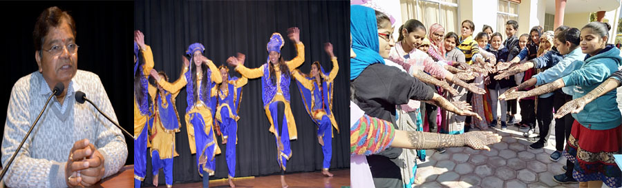 लाडनूँ, 23 जनवरी 2020। जैन विश्वभारती संस्थान (मान्य विश्वविद्यालय) में चल रही चार दिवसीय सांस्कृतिक प्रतियोगिताओं के समापन सत्र में सम्बोधित करते हुये कुलपति प्रो. बच्छराज दूगड़ ने कहा कि शैक्षणिक व गैर शैक्षणिक गतिविधियां मिलकर ही विद्यार्थी का सर्वांगीण विकास करने में सक्षम होती हैं। यहां छात्र-छात्राओं के व्यक्तित्व विकास की ओर पूरा ध्यान दिया जाता है और उनके लिये उनकी रूचि के अनुरूप विभिन्न क्लबों का गठन किया जाकर उनकी प्रतिभा को निखारने का काम किया जाता है, जिसके लिये समस्त सुविधायें और आवश्यक बजट भी उपलब्ध करवाया जाता है। प्रतिभाओं को निखारने का मौका हाथ से नहीं जाने देना चाहिये और इन्हें राष्ट्रीय व अन्र्राष्ट्रीय स्तर की प्रतियोगिताओं में भी प्रदर्शन का अवसर दिया जाना चाहिये। स्वस्थ प्रतिस्पर्धा का विकास विद्यार्थियों में होना आवश्यक है। इस अवसर पर स्नेहा पारीक, महिमा प्रजापत तथा प्रतिष्ठा एवं समूह ने मनमोहक नृत्यों की प्रस्तुति देकर अपनी कला का प्रदर्शन किया। सांस्कृतिक समिति की सचिव डाॅ. अमिता जैन ने चार दिनों में सम्पन्न की गई प्रतियोगिताओं के विजेताओं की घोषणा की। उन्होंने बताया कि रंगोली प्रतियोगिता में भावना चैधरी समूह प्रथम रहा। ममता भाटी समूह द्वितीय और मनीषा टाक समूह तृतीय स्थान पर रहा। एकल नृत्य प्रतियोगिता में प्रथम स्नेहा पारीक, द्वितीय महिमा प्रजापत व तृतीय आकांक्षा डूकिया रही। सामुहिक लोकनृत्य में प्रथम स्थान पर सपना एवं समूह, द्वितीय महिमा प्रजापत एवं समूह तथा तृतीय स्थान पर पूजा पंवार एवं समूह और वृंदाएवं समूह रहे। एकल लोकगायन प्रतियोगिता में अर्चना शर्मा प्रथम, हिमांशी द्वितीय और मुमुक्षु संजना एवं मनीषा गोदारा तृतीय रही। मेहंदी प्रतियोगिता में कविता हुड्डा प्रथम, तरन्नुम बानो द्वितीय और रचना सोनी, अनिशा बानो, मनीषा टाक व खुशबू बानो तृतीय स्थान पर रहीं। सामुहिक भजन प्रतियोगिता में प्रथम स्थान पर रूबिना बानो एवं समूह, द्वितीय प्रतिष्ठा कोठारी एवं समूह तथा तृतीय स्थान पर दुर्गा एवं समूह रहे। स्टाफ कार्मिकों की एकल गायन प्रतियोगिता में प्रथम डाॅ. सत्यनारायण भारद्वाज, द्वितीय डाॅ. गिरधारीलाल शर्मा एवं तृतीय स्थान पर डाॅ. गिरीराज भोजक रहे। कार्यक्रम में प्रो. रेखा तिवाड़ी, प्रो. बीएल जैन, डाॅ. मनीष भटनागर, अभिषेक शर्मा, पंकज भटनागर, प्रगति चैरड़िया आदि उपस्थित थे। कार्यक्रम का संचालन मानषी व योगिता ने किया।